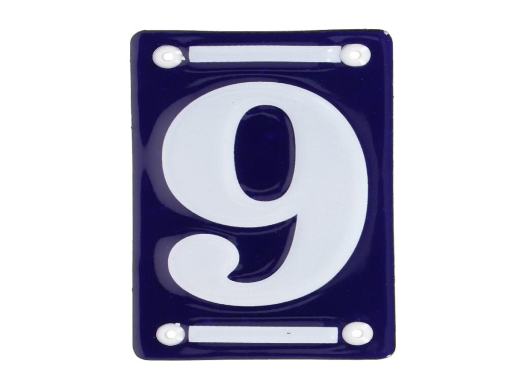 Číslo domu 9, smalt, modrá/biela, 7x12cm|Esschert Design