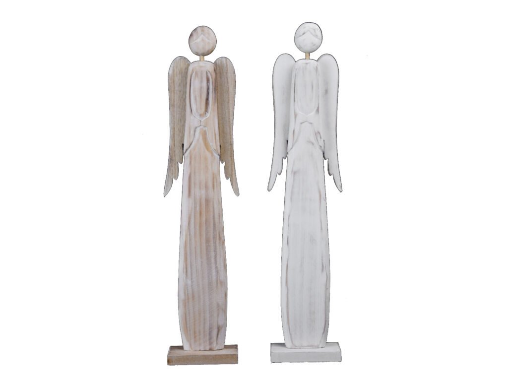 Dekorácia anjel na podstavci, MDF, biela/natur, 9,5x51x5cm|Ego dekor