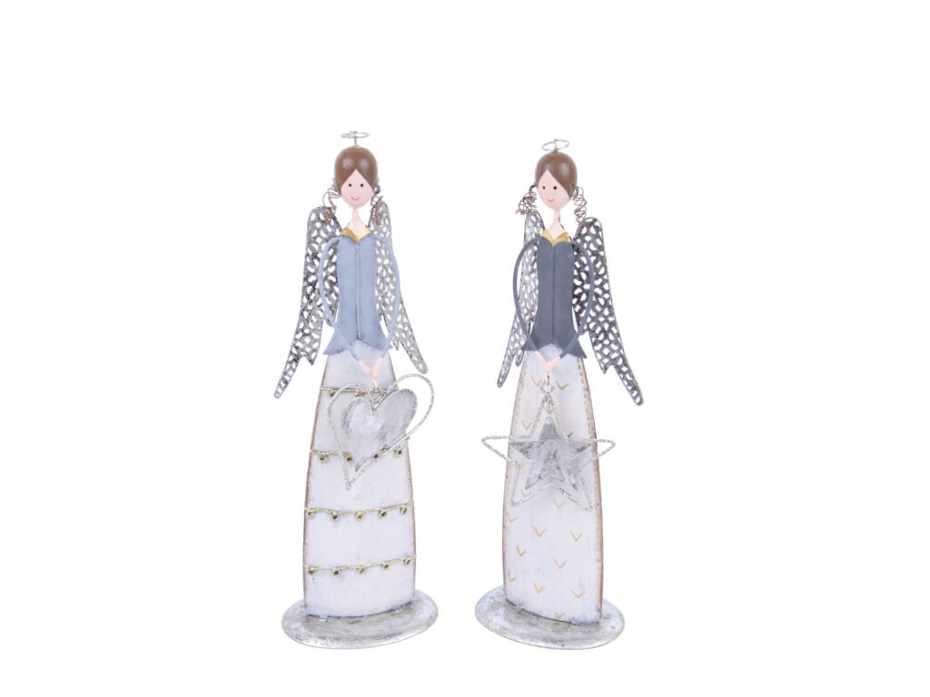Dekorácia Anjel srdce/hviezda, strieborná, 9,5x29,5x7c|Ego dekor