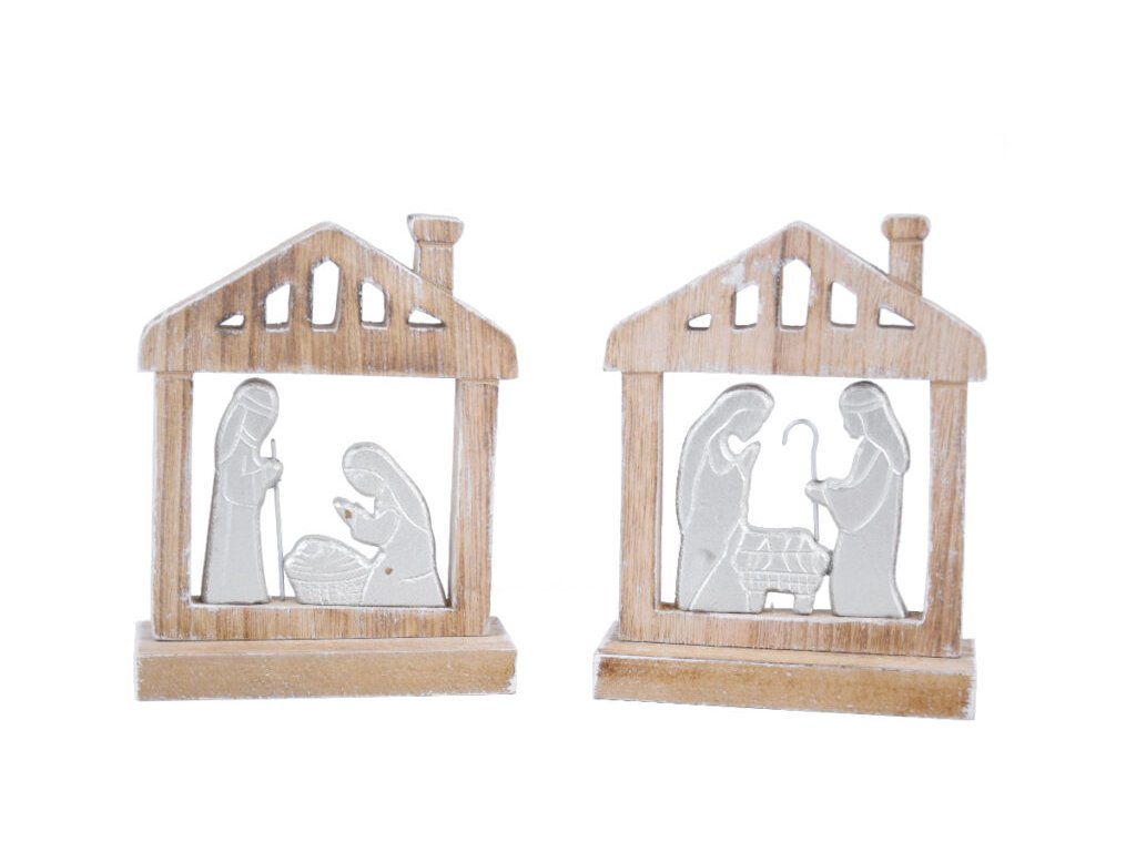 Dekorácia betlehem, MDF, narur/strieborná, 13x17x5cm|Ego dekor