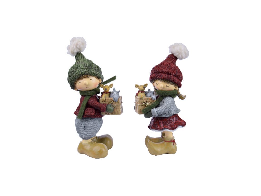 Dekorácia chlapček/dievča s darčekom, zelená/červená, 10x20x8cm|Ego dekor