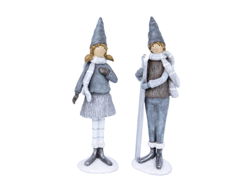 Dekorácia dievča a chlapec s lyžami, šedá/biela, 6,5x|Ego dekor