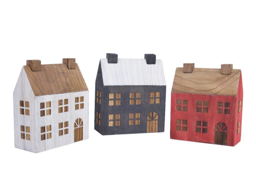 Dekorácia domček, MDF, biela/červená/čierna, 14x16x6cm|Ego dekor
