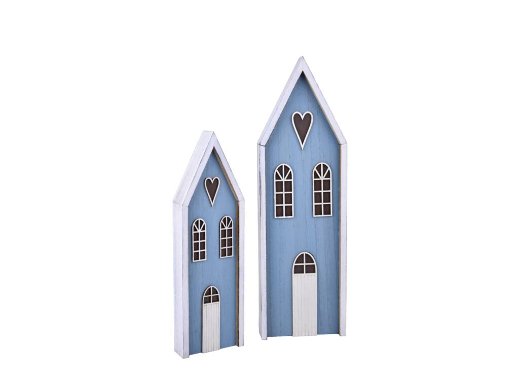 Dekorácia domček, MDF, modrá, 12x39x4/9x30x3cm|Ego dekor