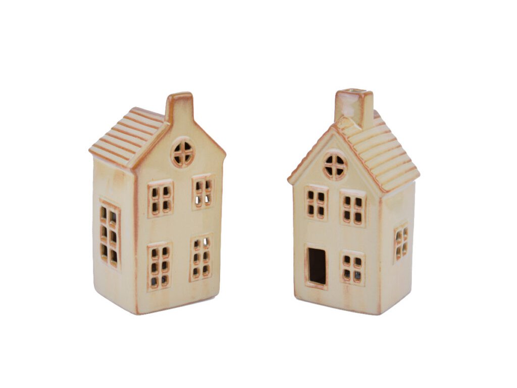 Dekorácia domček LED, bez batérie, keramika, béžová, 8,5x16x6,5cm|Ego dekor