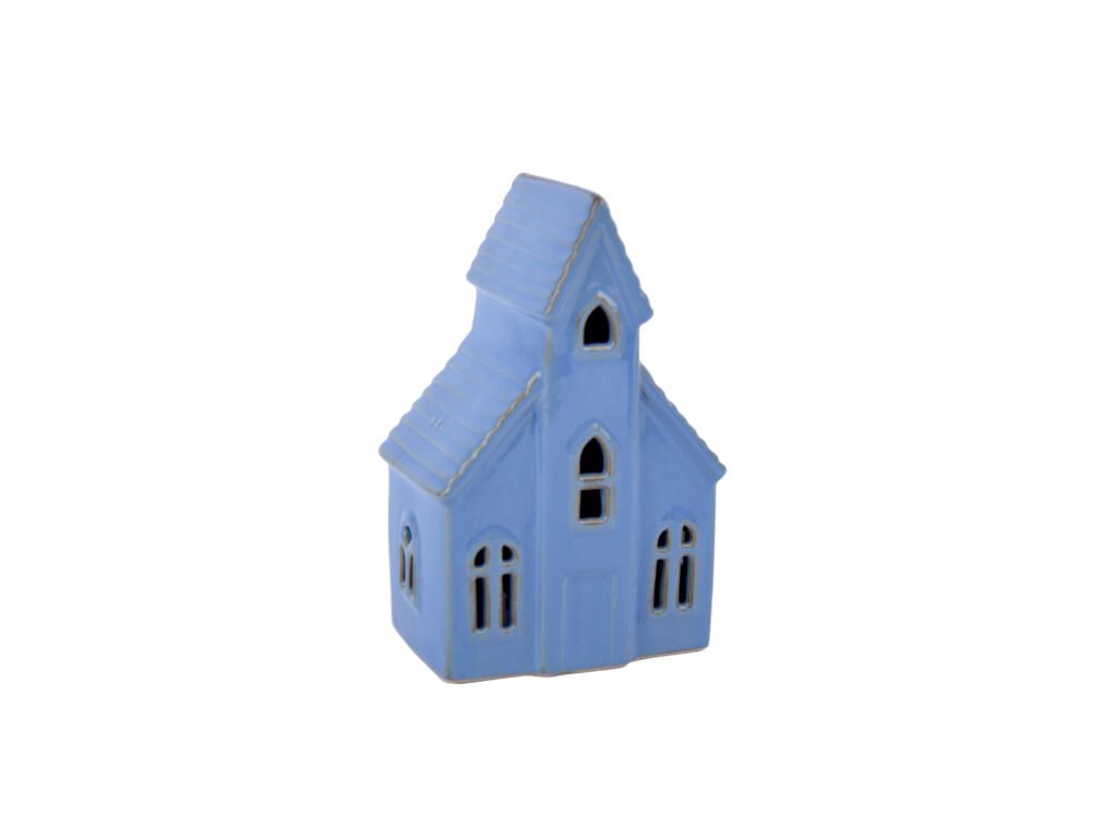 Dekorácia domček LED, bez batérie, keramika, modrá, 9x13x6, 5cm, ks|Ego dekor