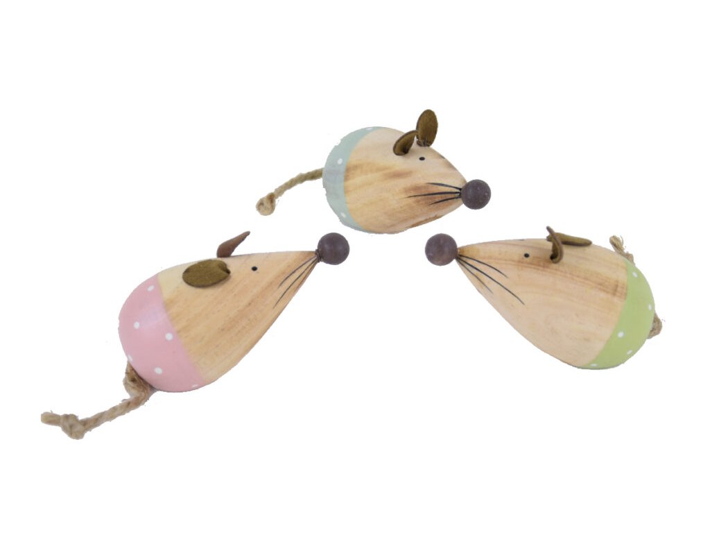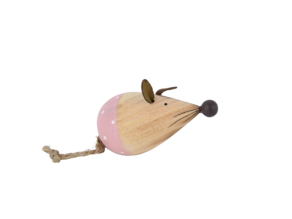 Dekorácia drevená s bodkami MYŠIAK ružová|prírodná 9|Ego dekor