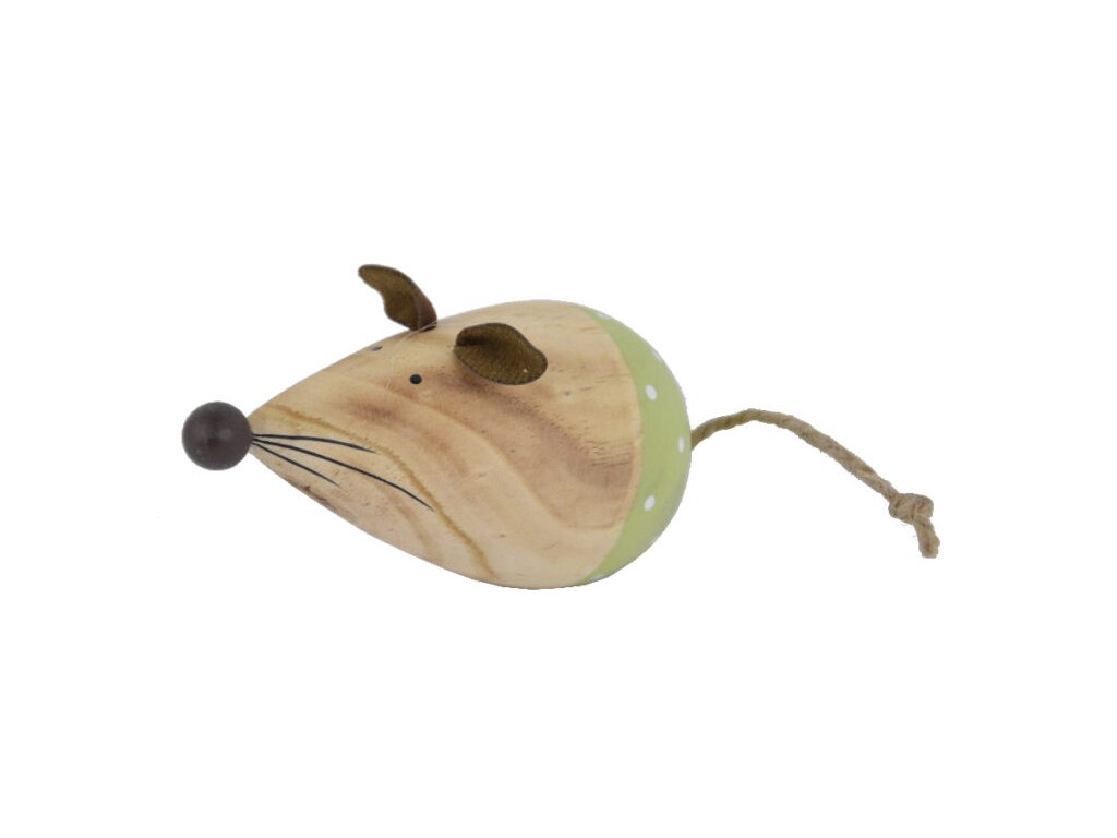 Dekorácia drevená s bodkami MYŠIAK zelená|prírodná 1|Ego dekor