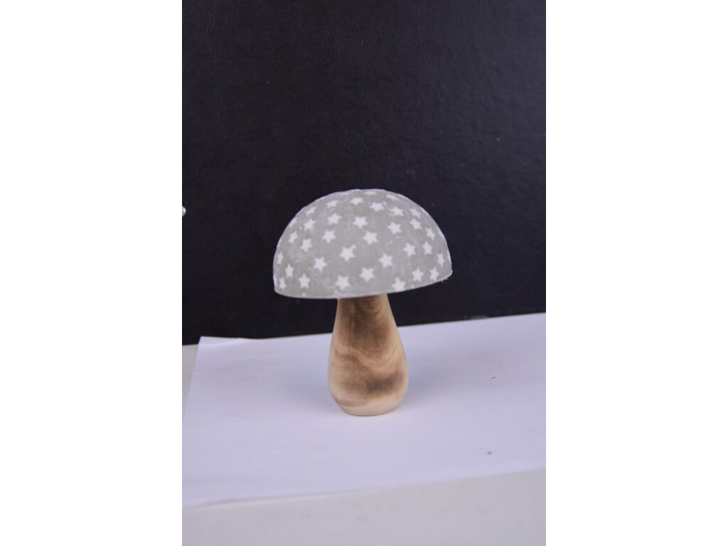 Dekorácia HOUBA, kov/drevo, 10cm, šedá s bielou hviezdou | Ego dekor