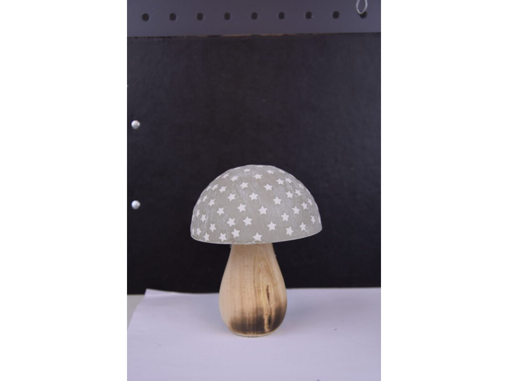 Dekorácia HOUBA, kov/drevo, 12cm, šedá s bielou hviezdou | Ego dekor