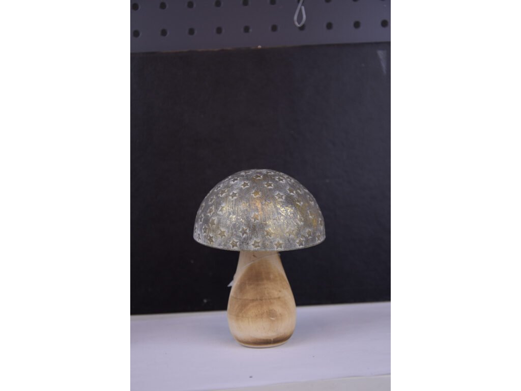 Dekorácia HOUBA, kov/drevo, 12cm, šedá|zlatá patina|Ego dekor