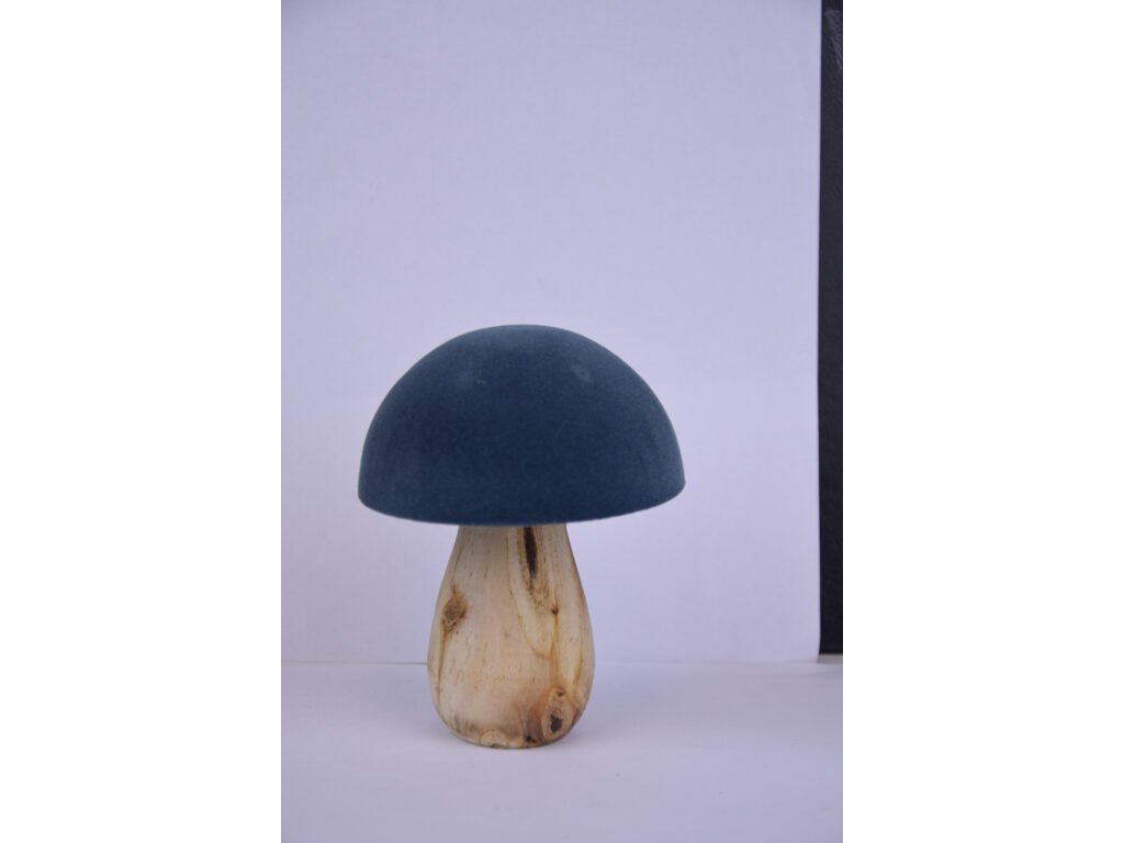 Dekorácia HOUBA, semiš/drevo, 12cm, prírodná/modrá|Ego dekor