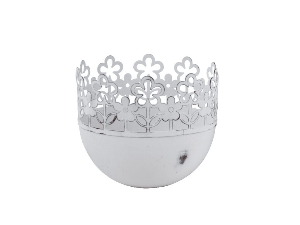 Dekorácia kalíšok KVIETKY biela patina 14x14x12cm|Ego dekor