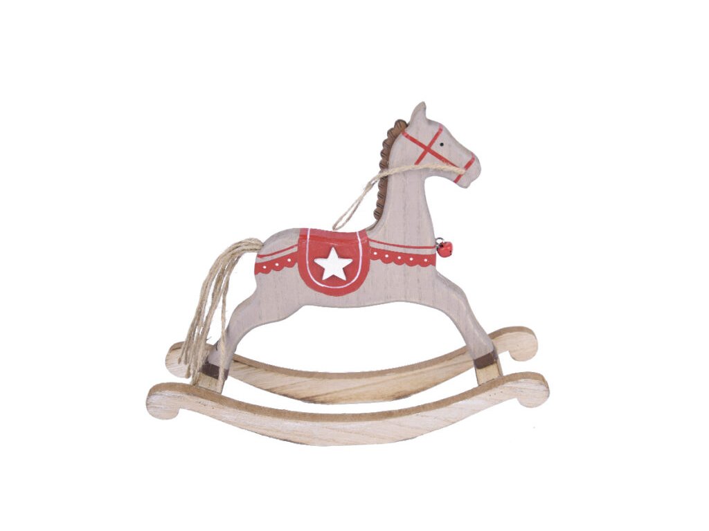 Dekorácia koník hojdacia, biela/červená, 27,5x24x6cm,|Ego dekor