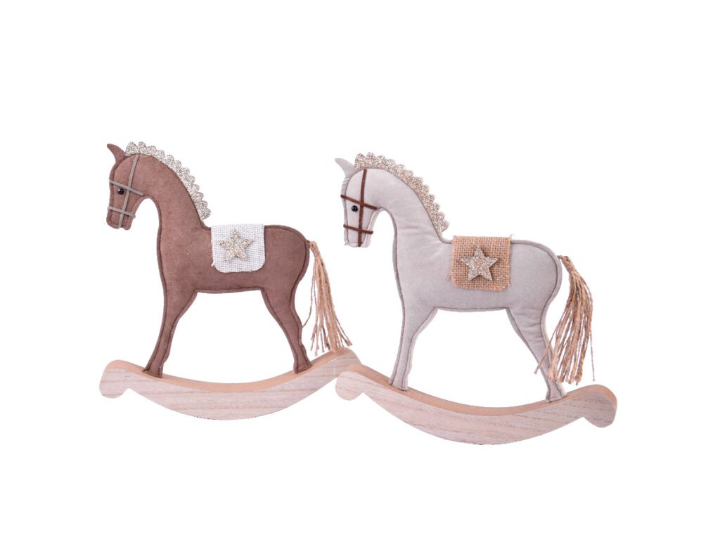 Dekorácia koník hojdacia s hviezdou, textil, hnedá/béžová, 28x31x3cm|Ego dekor