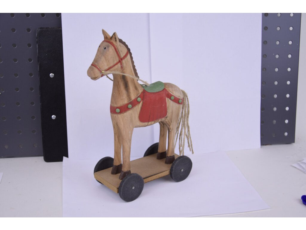 Dekorácia koník na kolieskach, drevený, 25cm, prírod|Ego dekor