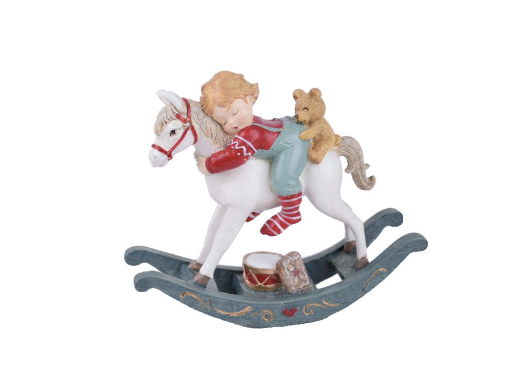 Dekorácia koník s chlapcom, polystone, červ./biela/zel., 20x178x6cm, ks|Ego dekor