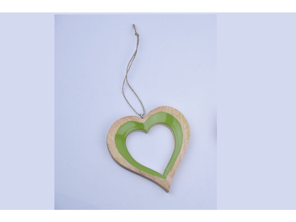 Dekorácia srdca, záves., mang.drevo + smalt, sv. zel./žltá, 11x1x11, 5cm