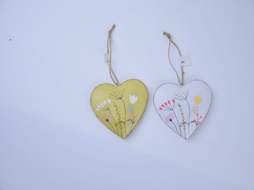 Dekorácia srdca, závesná, kov, biela/žltá, 10,5x9,5x2cm