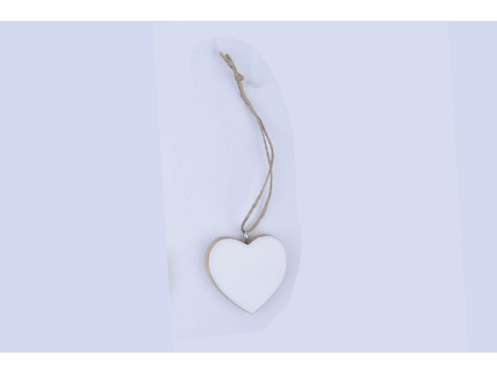 Dekorácia srdca, závesná, mangové drevo+ smalt, ružová/biela, 5x1x5cm