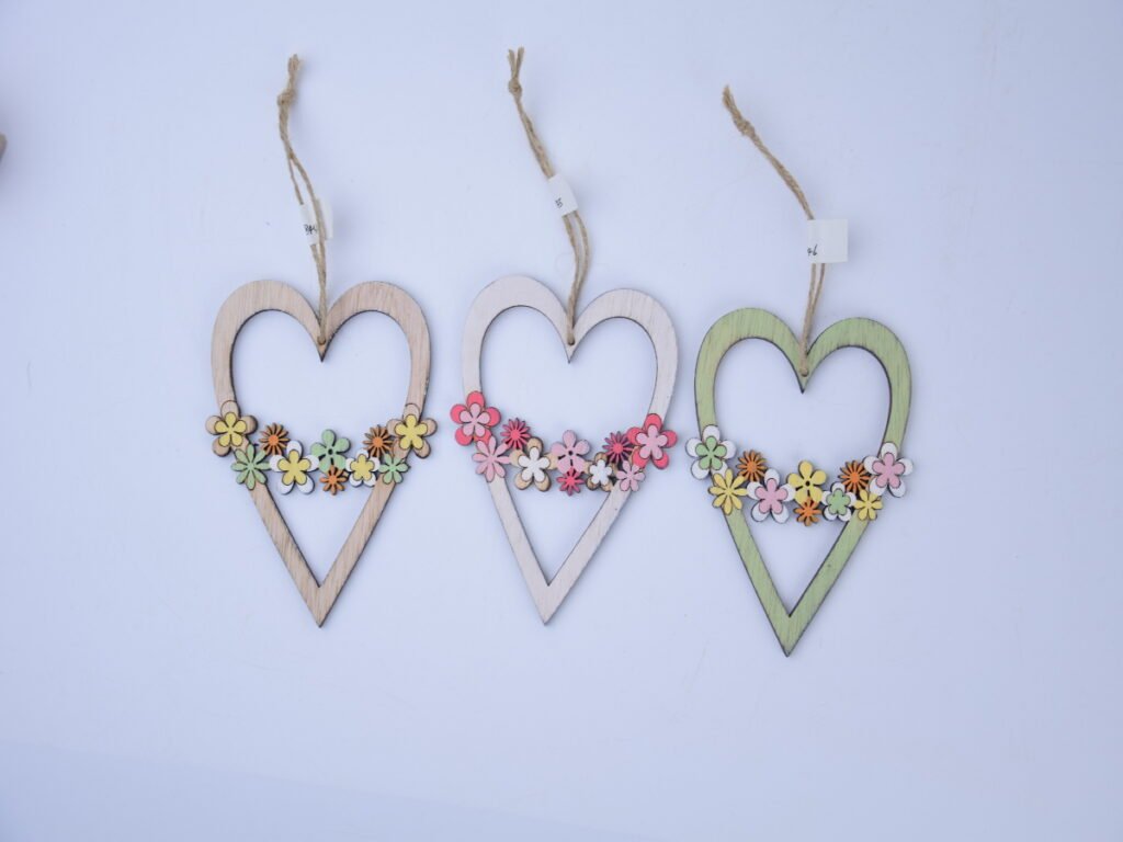 Dekorácia srdca, závesné, drevo, biela, 13,5x10x0,5cm