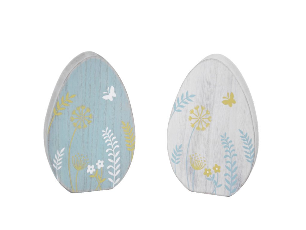 Dekorácia vajcia s kvetmi, MDF, biela / modrá, 11x15x2, 5cm | Ego dekor