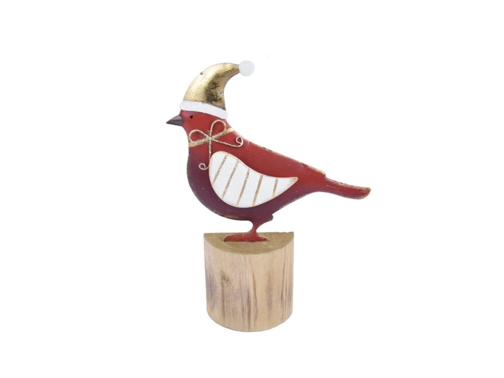 Dekorácia vtáčik na podstavci, červená/zlatá, 17,5x|Ego dekor