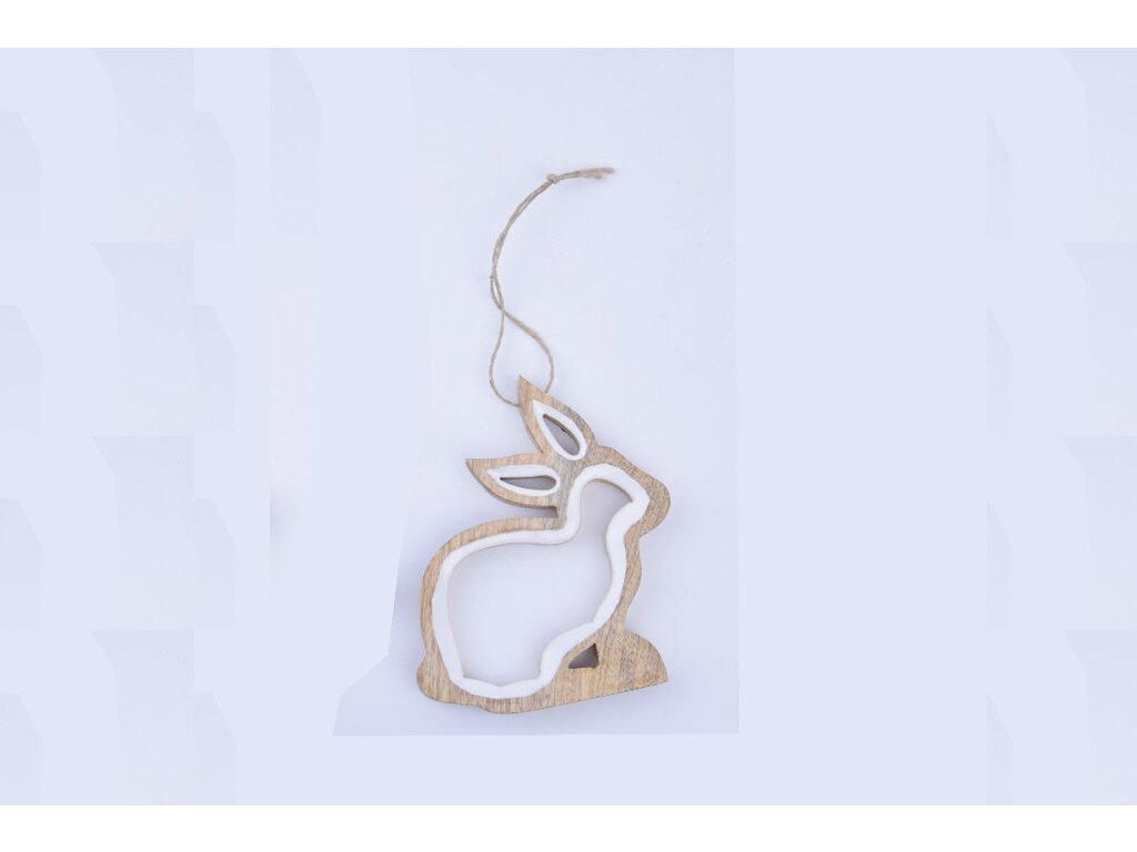 Dekorácia zajac, záves., mangové drevo+smalt, ružová/biela, 12x1,5x14cm