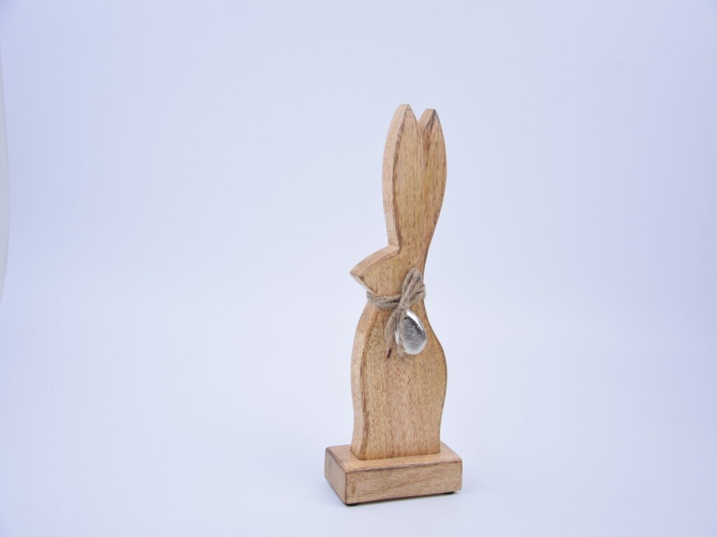 Dekorácia zajac na podstavci, mangové drevo + kov, natural, 8x4,5x20cm, ks