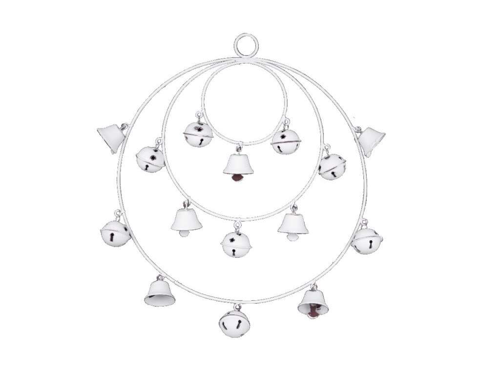 Dekorácia závesná kruh z rolničiek, biela, 30x30,5x3c|Ego dekor