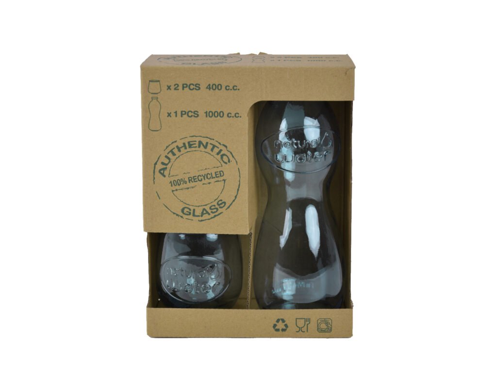 Fľaša a 2 poháre VODA, svetlomodrá|San Miguel