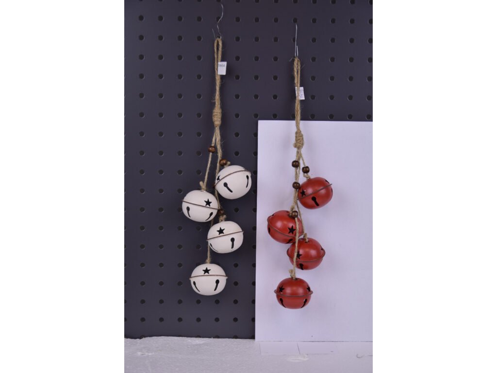 Girlanda s 5timi rolničkami, kovová, 33cm, biela/červ|Ego dekor
