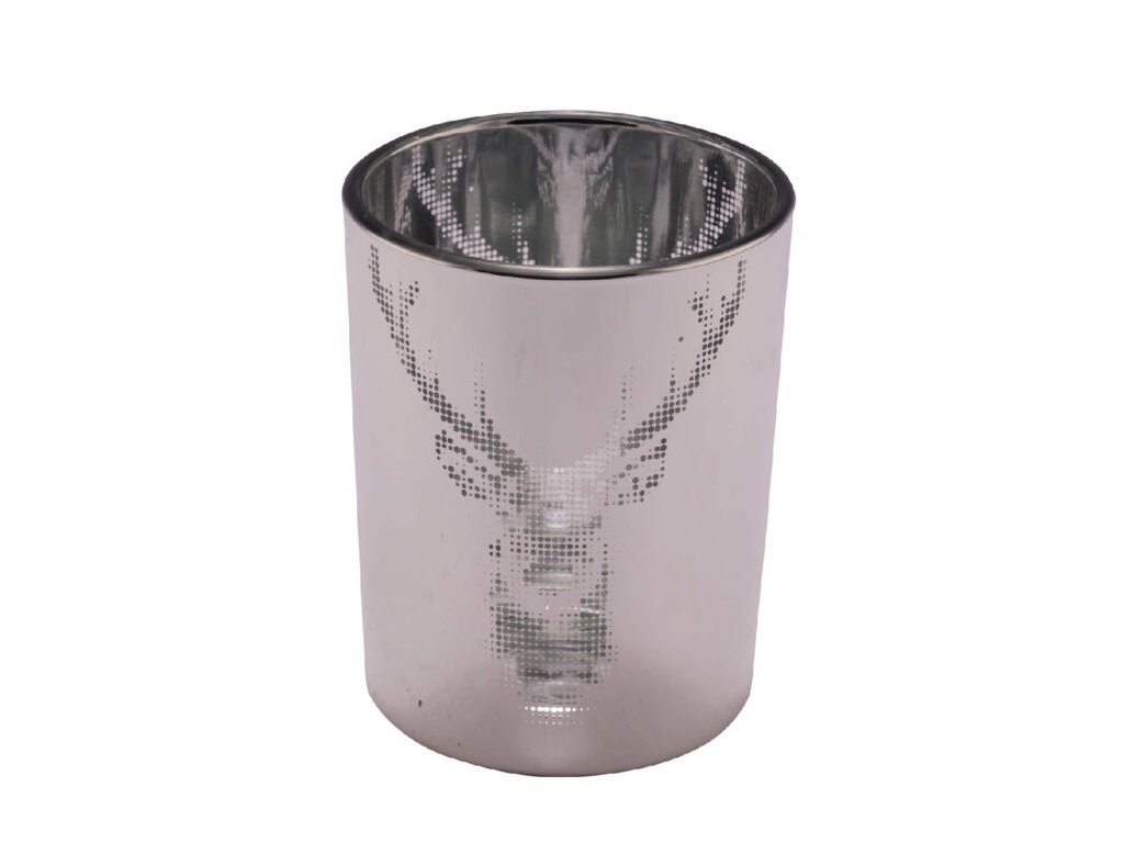 Glaswindlicht Hirschkopf, silber, 7,5x7,5x8cm, ks