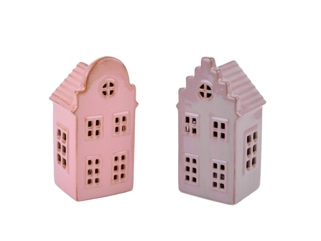 HK VDC Dekorácia domček LED, bez bat., keramika, oranž./hnedá/krém, 8x15x6,5cm