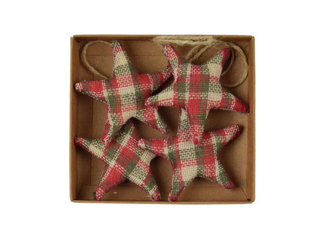 HK VDP Záves hviezda KOSTIČKY, textil, červeno-zelená, 11x2x12cm, box 4ks