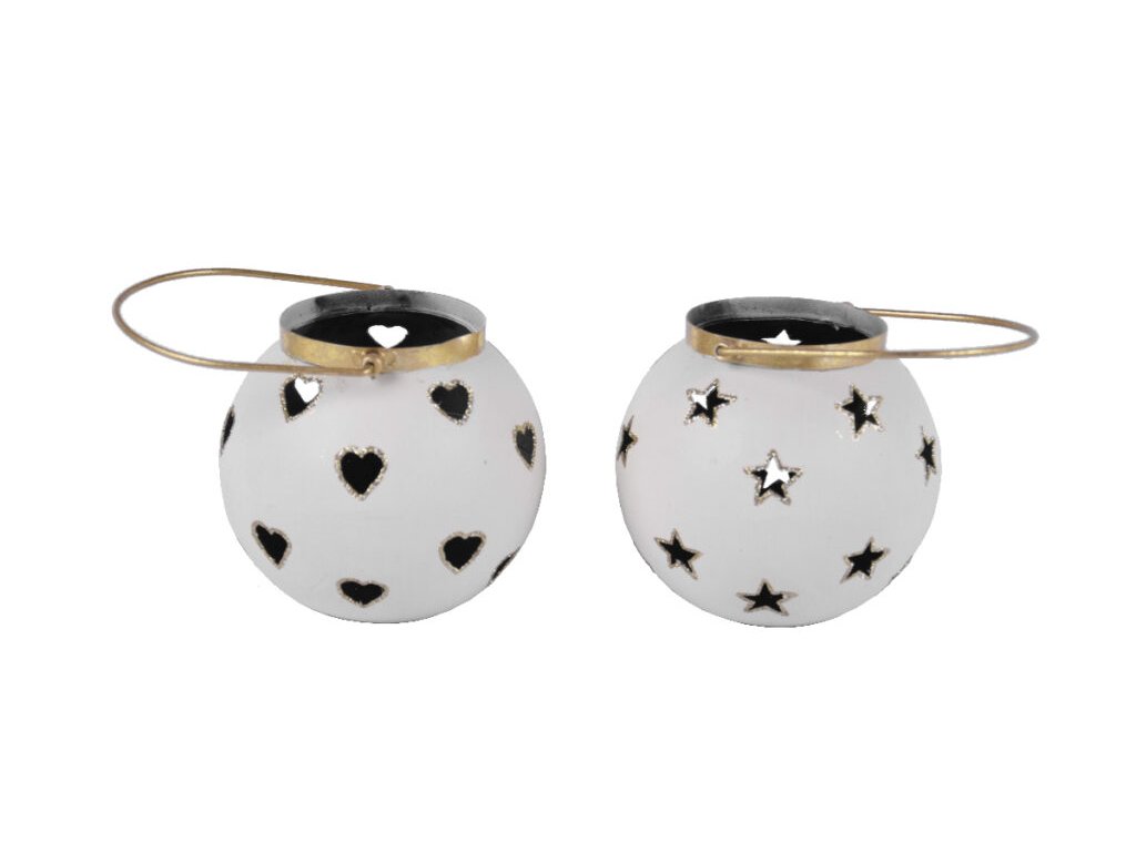 Lampáš srdca/hviezdy, biela, 11x10x11cm|Ego dekor