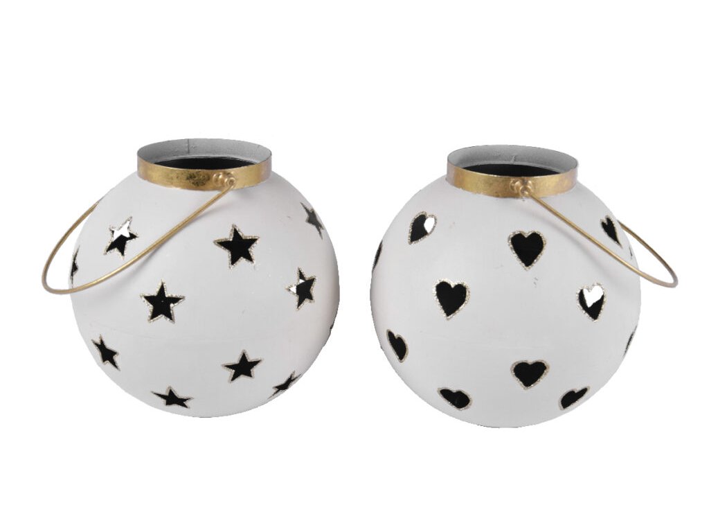 Lampáš srdca/hviezdy, biela, 19x20x19cm|Ego dekor