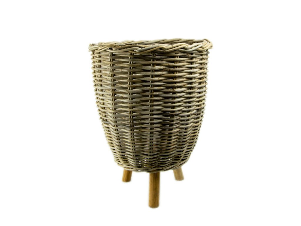 Obal na kvetináč|kôš na nožičkách, s igelit. výplní, pr.43x54cm, šedá, FSC 100%
