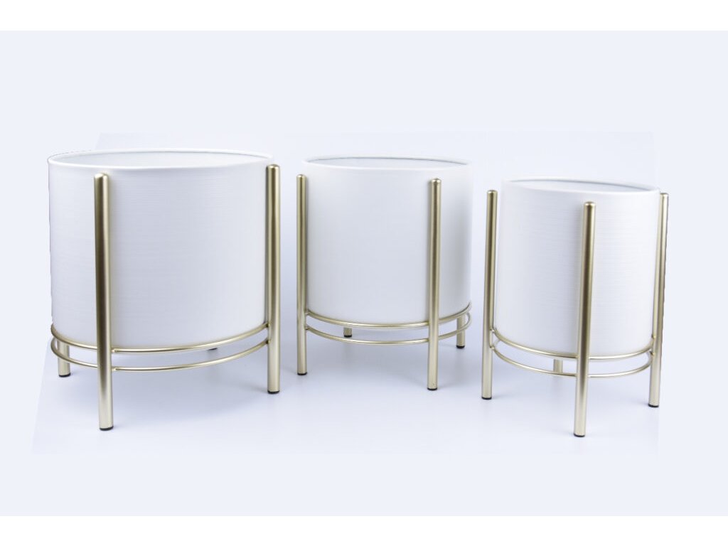 Obal na kvetináč na podstavci, kov, biela, pr.29x32cm|Ego dekor