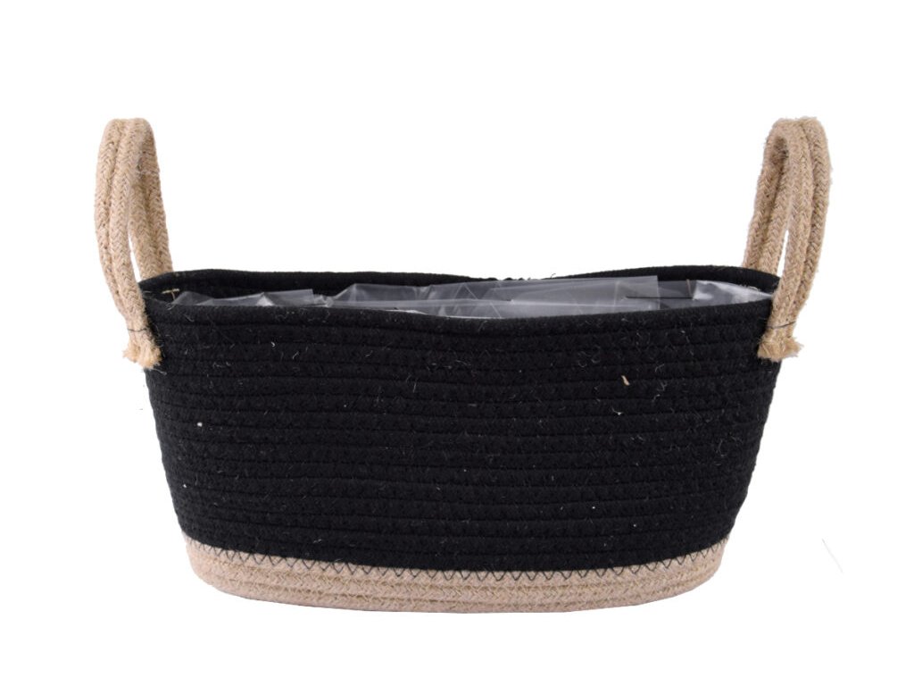 Obal na kvetináč s uchami, juta, tmavá/prírodná, 38x26x13cm|Ego dekor