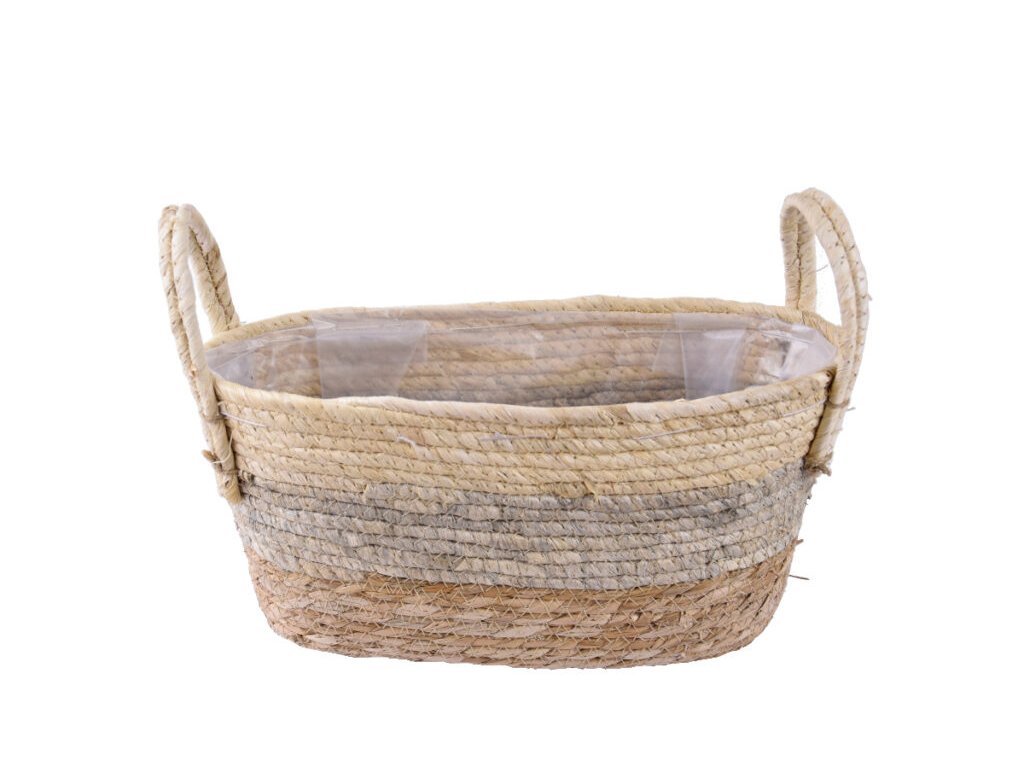 Obal na kvetináč s uchami, morská tráva, prírodná, 35x24x16cm|Ego dekor