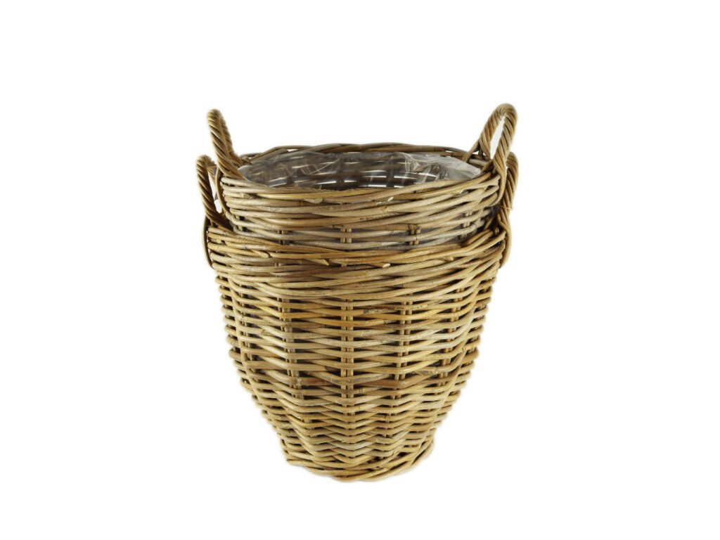 Obal na kvetináč s uchami RATTAN, s igelit., pr.41x42|39x37cm, šedá, FSC 100%