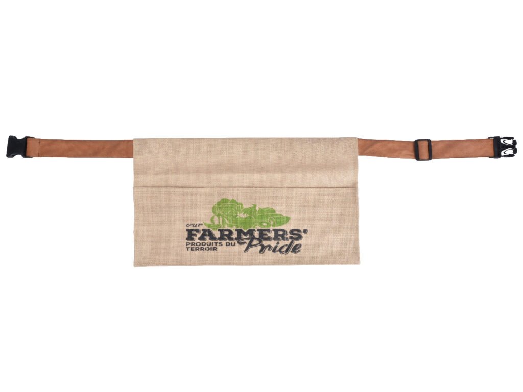 Záhradná zástera z juty s polyuretánovými popruhmi s nastaviteľným systémom a zapínaním na klipsy. V prírodnom dizajne s vreckom uprostred a farebnou potlačou zeleninového motívu a nápisu FARMERS Pride. Rozmery v cm (ŠxHxV): 109x1x74. Obsah: nie je uvedený. Materiál: juta, PE, PU, PP.