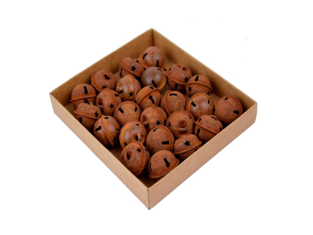 Ozdoba rolnička, kov, hrdzavá, pr.2,5cm, box 24ks|Ego dekor