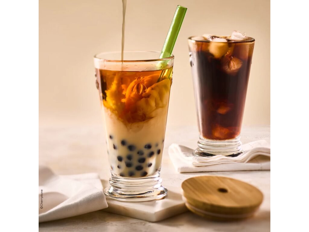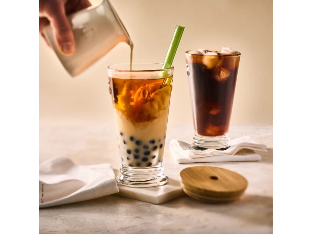Pohár 0,46L, s viečkom a slamkou, BUBBLE TEA, číra, Box/S3