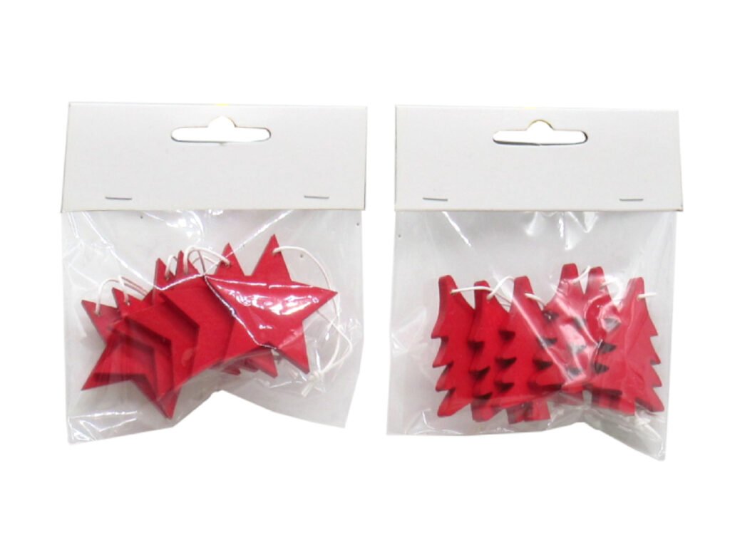Prízdoba hviezda/stromček CONFETTI, drevo, červená, 4x5x0,5cm/S6|Ego dekor