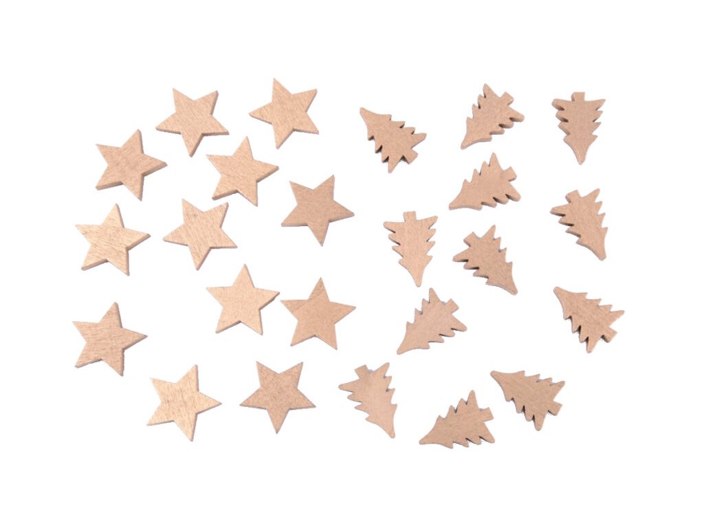 Prízdoba hviezda/stromček CONFETTI, drevo, zlatá, 3x3x0,5cm/S12+12|Ego dekor