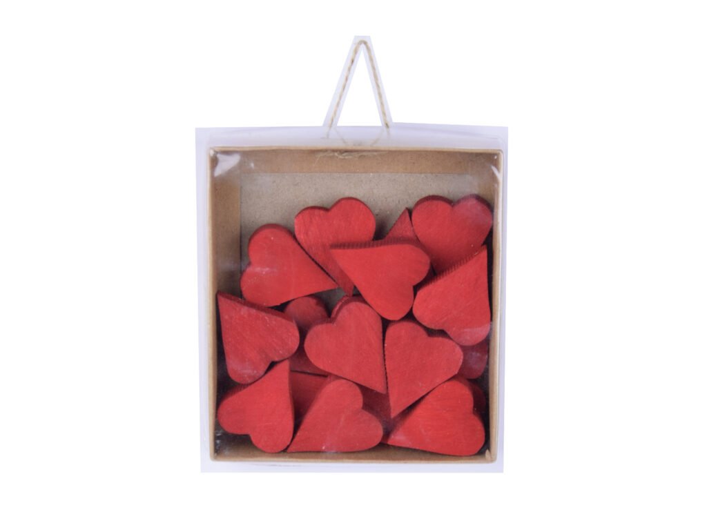 Prízdoba srdca, drevo, červená, 3x4x1cm, box 18ks | Ego dekor
