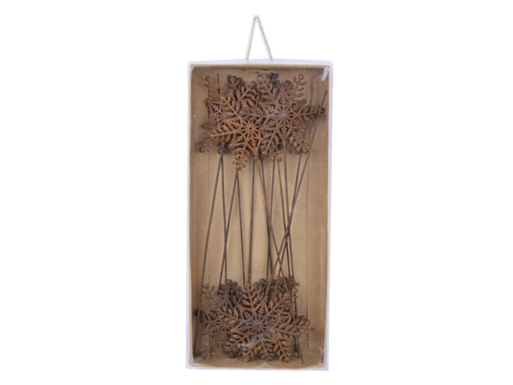 Prízdoba vločka METAL, zapichovacia, kov, hnedá, 7,8x25x1cm, box 12ks|Ego dekor