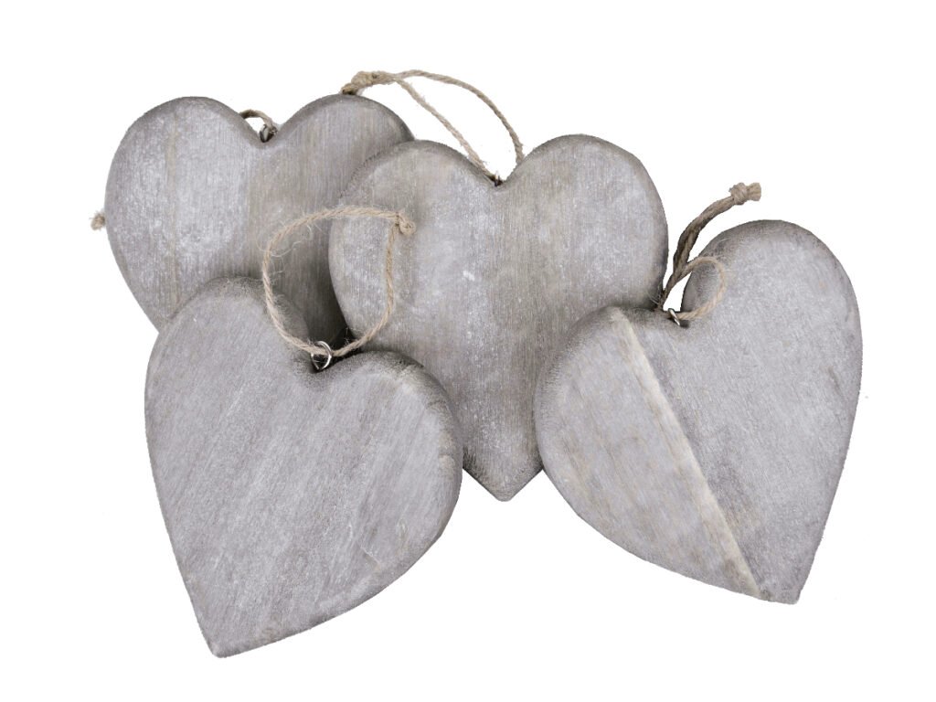 Srdce drevené, šedé, V, balenie 4ks|Ego dekor
